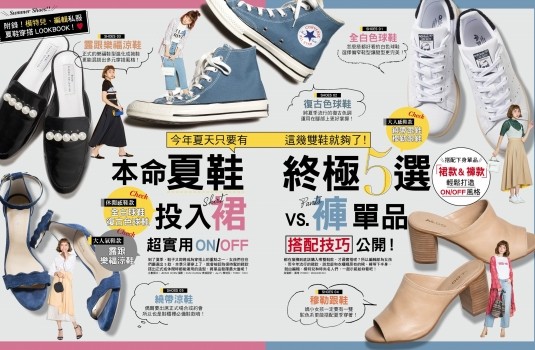 到了夏季,鞋子又即將成為穿搭上的重點之一,女孩們往往都在猶豫到底該購入哪雙鞋款,才最實搭呢?所以編輯部為女孩們嚴選出5款,本季只要穿上了,就會被認為很時髦的鞋款,而今年流行的鞋款,該怎麼和衣櫃裡原有的裙、褲等下半身,搭出正式或休閒時都能著用的造型,將單品發揮最大值呢?就由編輯、模特兒和時尚名人們,一起示範給妳看吧!