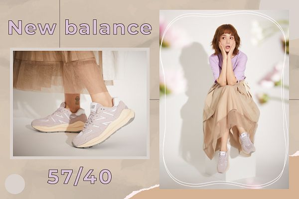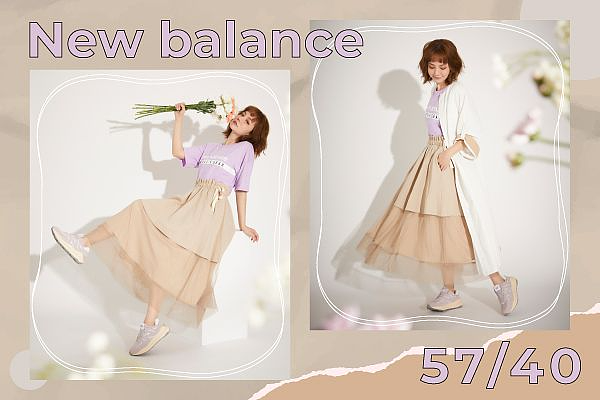 今年三月 New Balance 發表了以 574 為原型啟發的 57/40 後話題不斷,除了延續 327 的大 N 標誌外,保留 574 簡約俐落的外型及鞋後跟的 CR 足踝穩定片,並加入充滿層次感以及 574 沉穩的中底結構,整體設計充滿復古與創新的結合,今年春夏更推出絕對會令眾女子們瘋狂的奶霜色系,這次也特地加碼請謝琦琦以一身仙氣空靈的穿搭帶出粉嫩的春夏氣息。