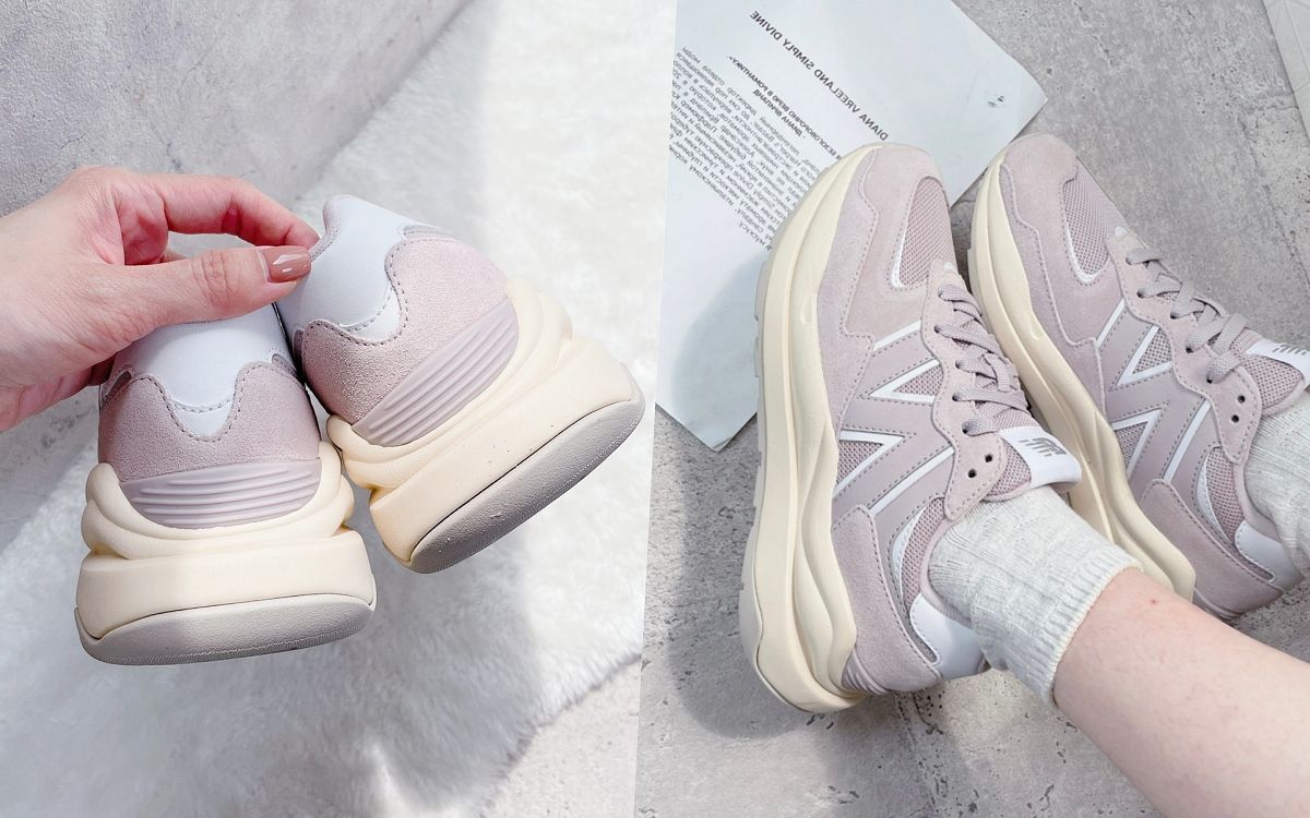 在基本調性的淺灰之外,57/40更擁有一系列柔嫩細膩的色選,玫瑰奶油粉色與少女感的粉紫色,讓外型強勢的鞋款也呈現絕美印象,57/40還結合了兩處中底設計巧思,讓鞋底看來寬闊又帶靈動的流線波浪感,穿搭起來更是舒適度滿分。