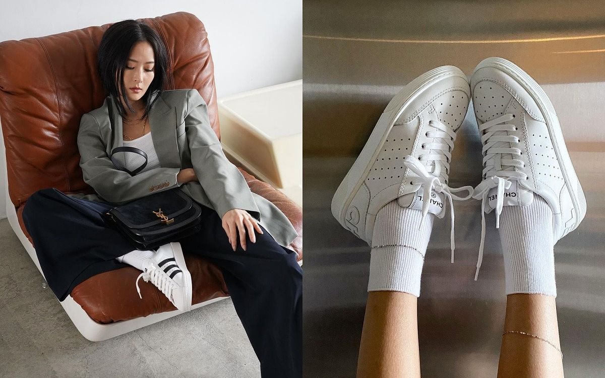 除了運動品牌外,孫芸芸也常穿著精品球鞋亮相,包含了這款Prada與adidas Originals聯手演繹的經典之作Superstar,保留了鞋款的代表性元素,並在鞋身及鞋舌上細緻的加入PRADA Logo,開啟球鞋全新年代!另一款質感十足又百搭的CHANEL復古小白鞋,連鞋跟上都充滿著香奈兒標誌,從各個角度看都零死角!