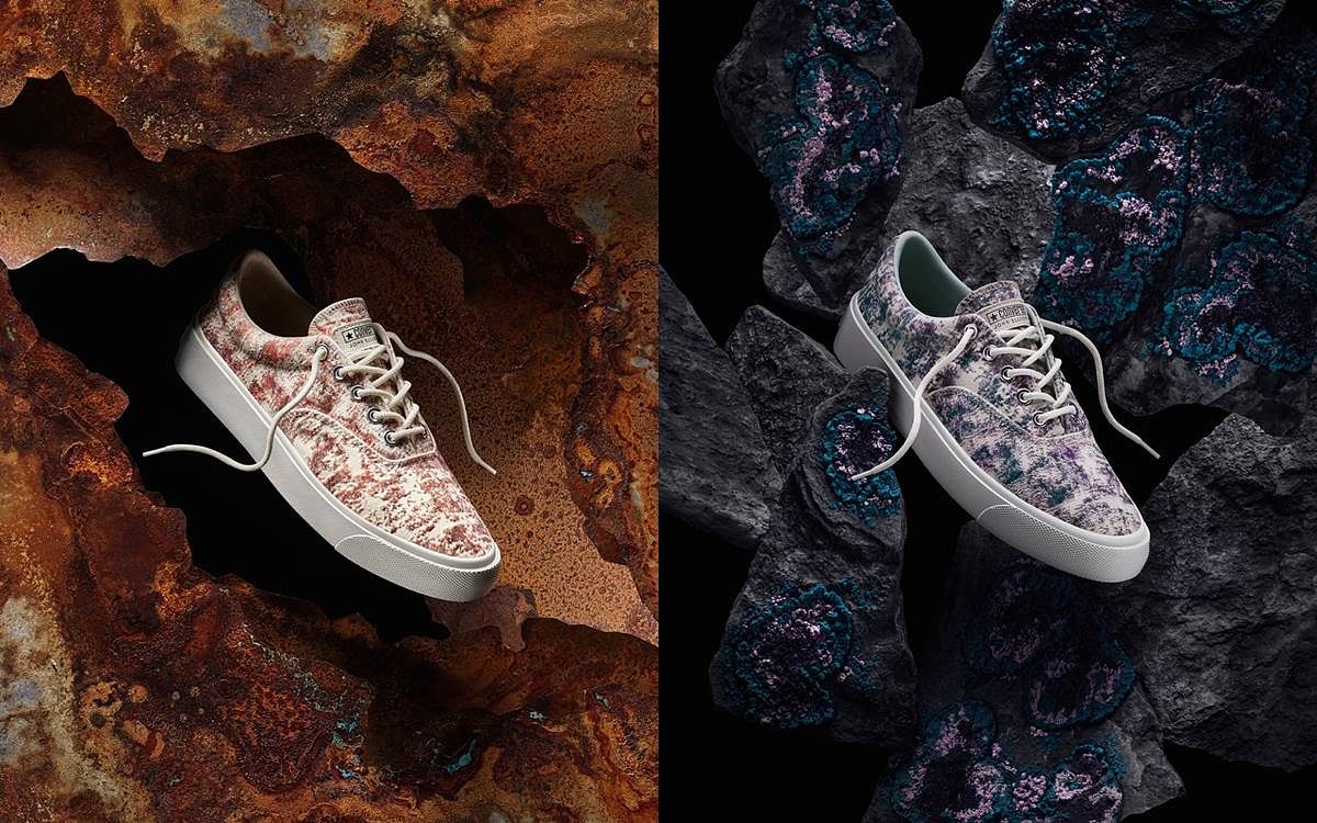Converse攜手著名男裝設計師John Elliott重塑經典Skidgrip鞋型,採用帆布結合植絨和數碼印刷工藝打造銅銹斑駁感圖案,呈現復古歲月的紋理印記。