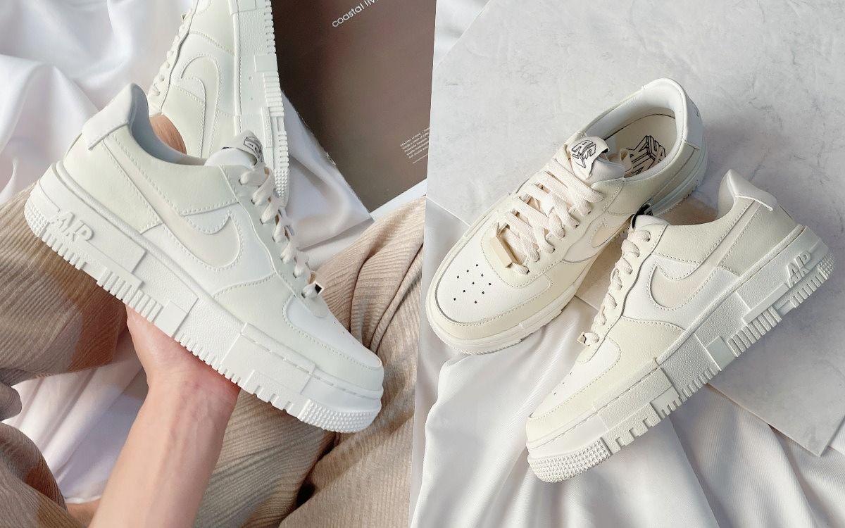 女子專屬的Nike Air Force 1 Pixel,是品牌數一數二的熱銷款,鞋底特別以解構式線條打造,分量感的厚底一上腳就瞬間增高5公分,2021推出白色基本款及奶油色,俐落耐看的層次感,就算穿到2022年也看不膩眼!
