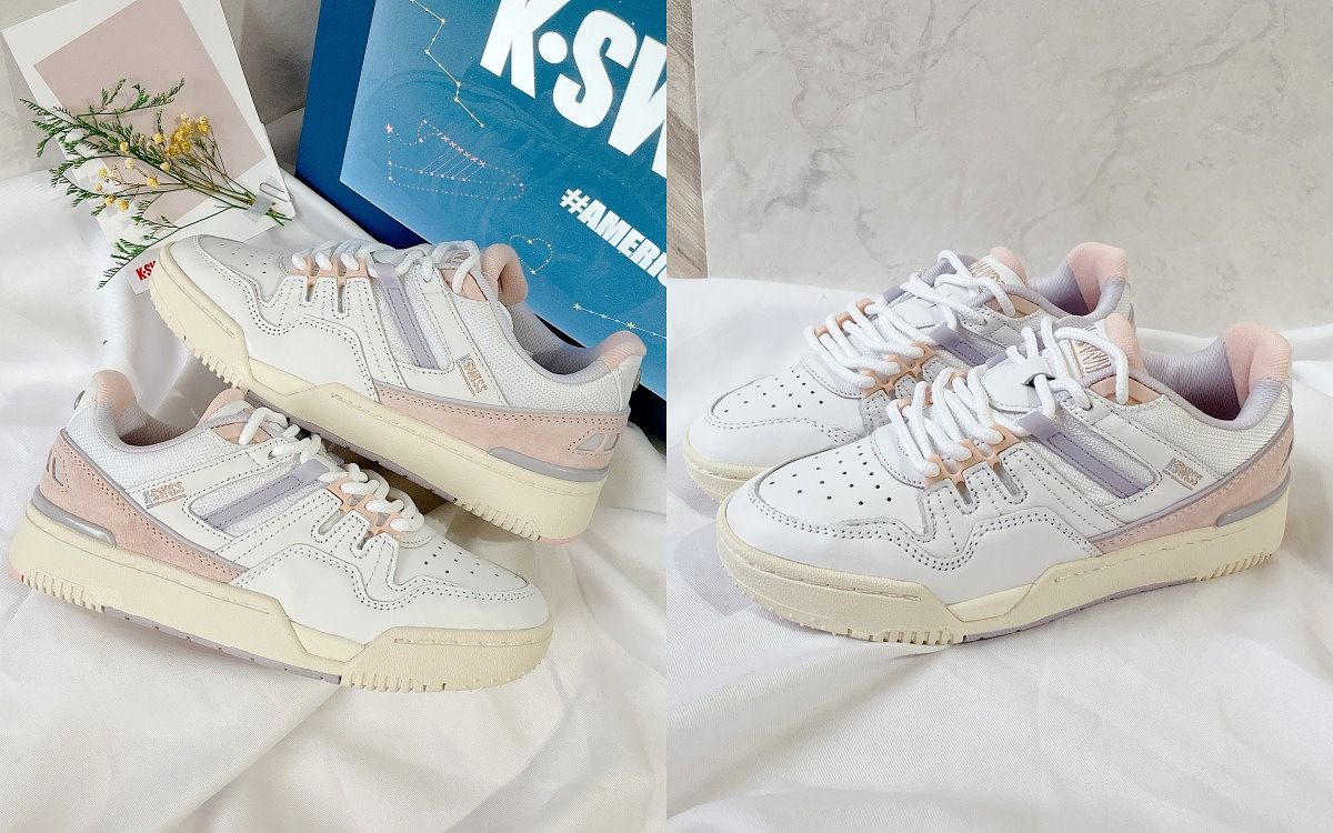 K-SWISS新款復古球鞋,設計繆思來自80年代網球鞋風潮,擷取經典鞋款Gstaad Si-18系列精髓為結構基礎,並改以鋸齒狀的鞋面裁片為底,視覺上就帶來強烈的設計感,加上以好感度極高的粉嫩色打造,完全命中女孩們的心!
