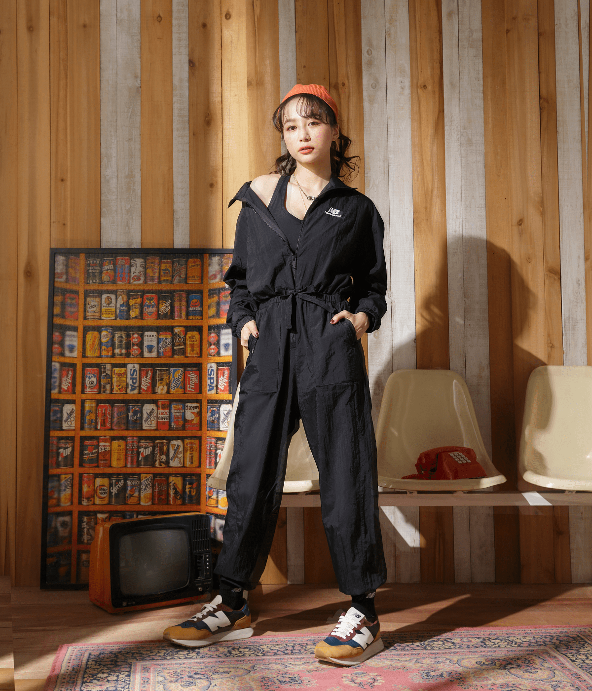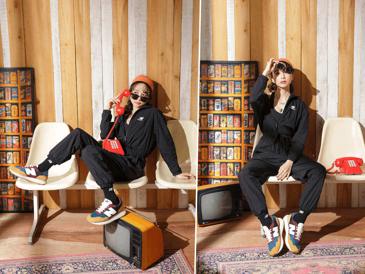 黑連身長褲NT.2980 / MS237HR1 NT.2,680TOMO的一件式穿搭原則:「想營造不同感覺,可以加上髮帶、襪類、外套等單品,或是只要改變腳下的鞋款就是另一個風格!」這次選用的全黑NB經典連身褲款,簡直是懶人穿搭必備,內搭同色系的運動BRA TOP可以適時地露出,更顯整體層次感!腳踩NB復古簡約的拼色球鞋,讓黑色連身褲與球鞋同時成為焦點,再搭配同色系髮帶呼應鞋款色調,讓簡約造型中卻又藏著許多不簡單!