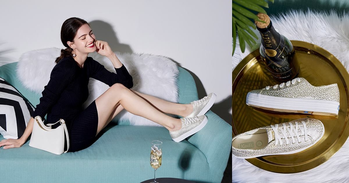 小白鞋換上閃亮金屬及滿版印花,完美妳的年末派對穿搭!