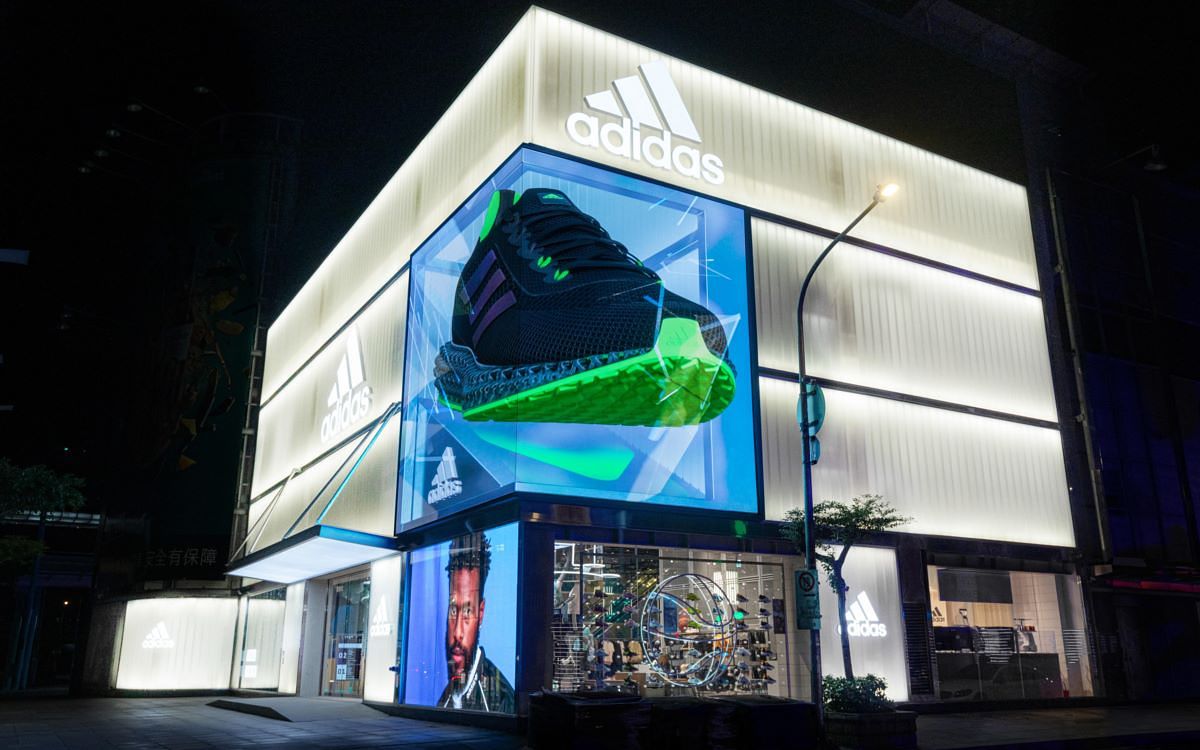 全新adidas Brand Center信義品牌概念店,第一眼就以全台北唯一裸視3D電視外牆搭載adidas最高階運動科技鞋款4D FWD震撼台北街頭,展現不同凡響品牌聲勢。高科技LED影像技術結合光影透視營造虛實交融的驚艷視覺效果,讓4D FWD鞋款驚破台北街頭,正如該鞋款代表運動科技的領先革命地位,展新adidas Brand Center信義品牌概念店也以前所未有的震撼效果,為消費者帶來身歷其境的沉浸式視覺體驗,成為台北街頭嶄新熱門打卡景點。