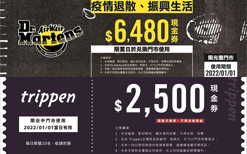 Dr. Martens:現場前20名可憑實體振興券$5,000面額兌換$6,480馬汀現金券