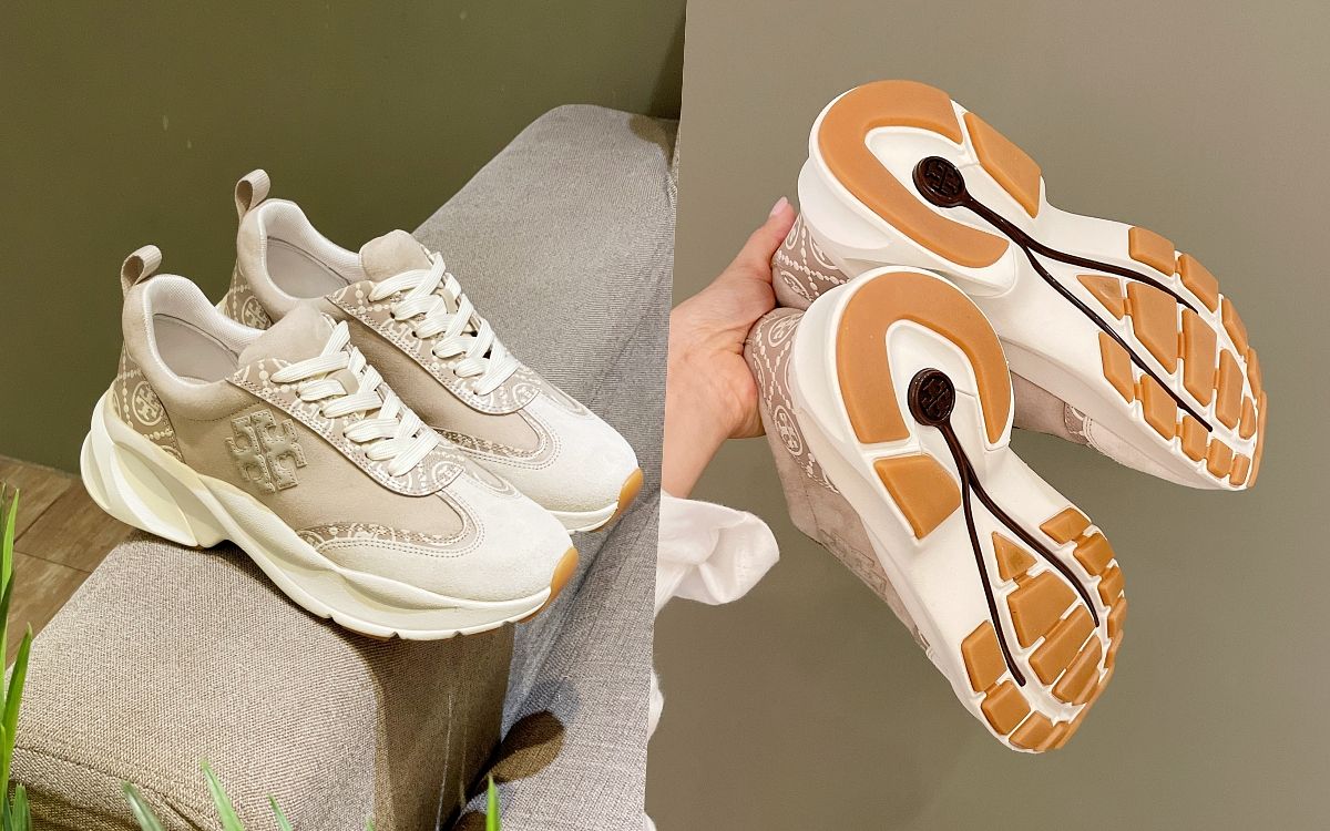 鞋底刻意拼接的顏色讓視覺再無限延伸,加上前低後高的加厚鞋底,穿著球鞋也能輕鬆擁有修長雙腿,在任何時間場合,只要穿上這雙Tory Burch Good Luck Trainer球鞋,就能隨時充滿自信風采、讓每個步伐都伴隨著好運,2022女子精品球鞋首選就是這一雙了!