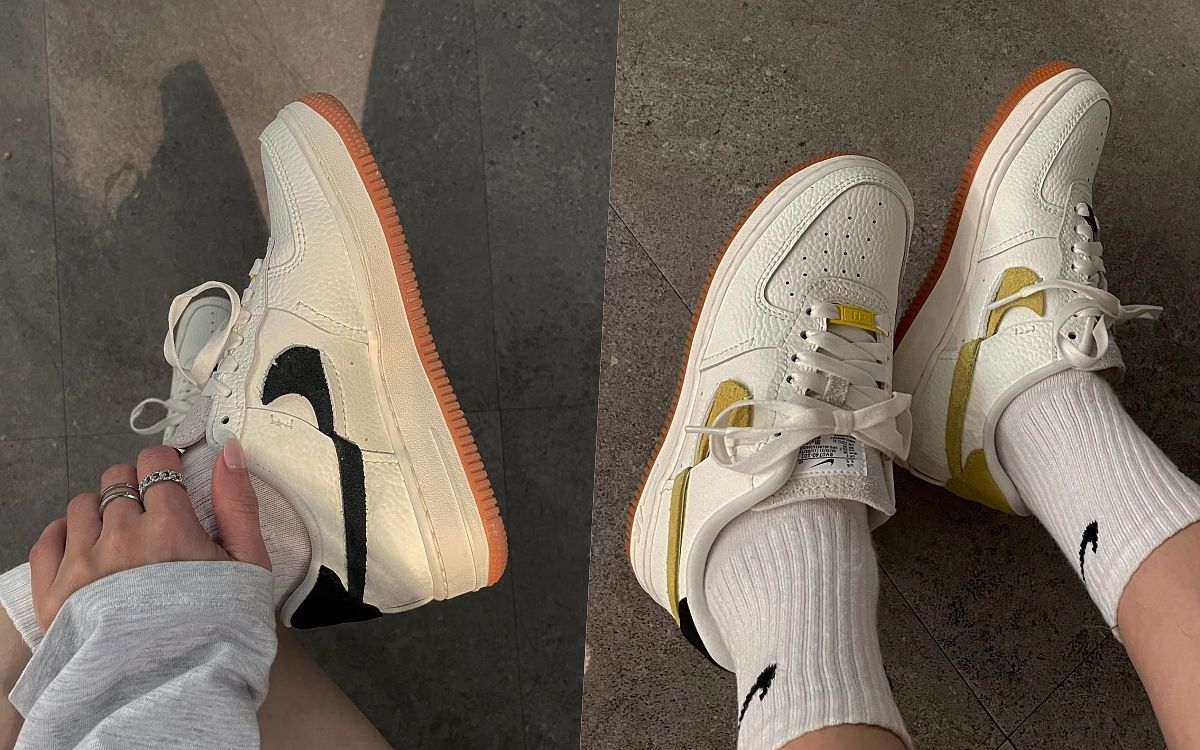 2022春夏第一雙買的新球鞋!新款歪掉版的Nike Air Force 1,有著解構設計、兩邊不對稱顏色,一面是黑色、另一面是黃色超可愛!鞋內標移到鞋舌上,各種搞怪小細節都讓人愛上!鞋身其實是淡淡奶油色皮革,不是純白色唷!已經開賣~可以到實體店鋪看看!