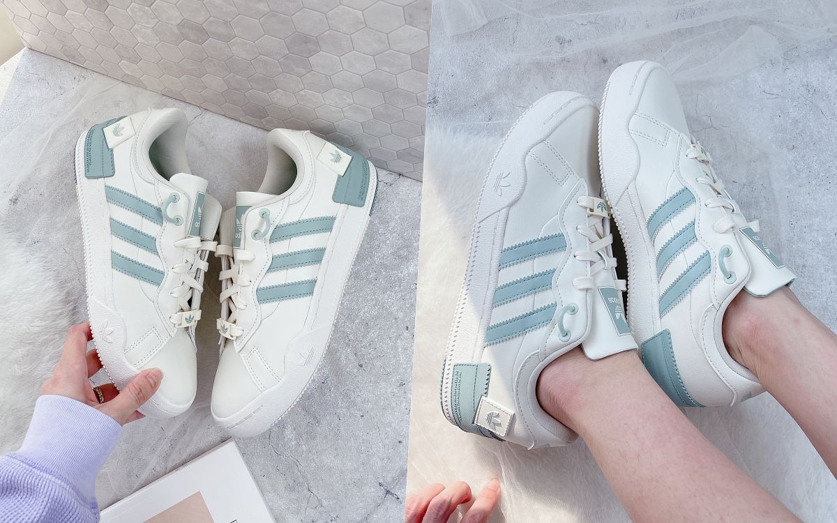 adidas ORIGINALS十分值得收編的REY GALLE 經典鞋,以柔嫩霧藍色調點綴奶油白色,視覺清新又充滿亮點,精心縫製的細節和鋸齒狀三條線、為經典造型增添質感,厚底設計輕鬆打造完美腿長!