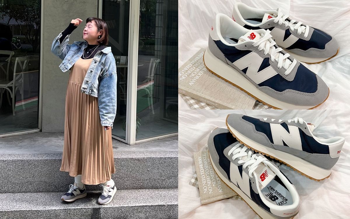 近期一直關注灰色系的球鞋,同時也在掙扎NB327與237的型號,因為我的腳板比較寬也是大腳尺寸,楦頭不能過窄、鞋舌不能太高都是我挑球鞋的關鍵。挑選過程裡面發現這雙帶深藍感的灰色,因為深淺色都有,所以不管搭配各色上衣都很中性,增高的比例與焦糖色的鞋底都是可愛加分的地方.選擇裙裝或是褲裝也都很好搭配,對於喜歡復古感風格的女孩來說絕對不要輕易錯過~