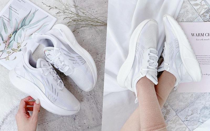 第一眼就有型到令人難以忽視的PUMA Fracture NITRO鞋款,將縈繞夢幻空氣感的純白鞋面以輕盈柔和的網布拼接,透明鞋身更與銀色光束相互交織,讓鞋款呈現滿滿前衛質感,另外在細節處的鞋舌與鞋側身,都以霓虹反光貼條巧妙妝點,最後則是專屬厚氮氣鞋底,不經意踩上就能打造修長比例,各種風格穿搭都適合。