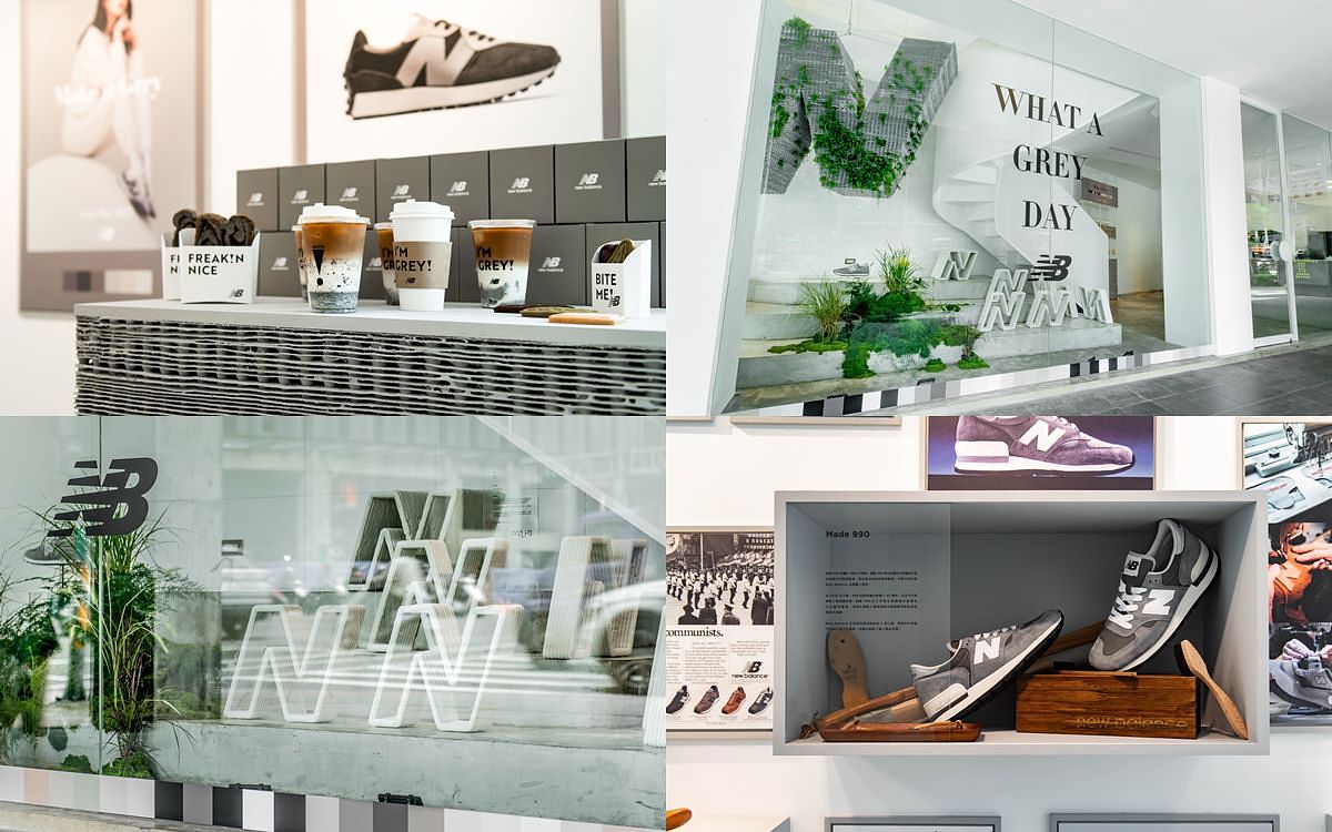 灰色是位在色譜黑白兩端點的平衡色系,也與本次聯手舉辦的CAFE!N指標性黑、白色調展現了完美平衡。拜訪CAFE!N民權主題店,映入眼簾的即是宛如微型都市秘境的原生姿態,New Balance 指標性的「N」懸掛在三角櫥窗內,注入綠色植栽與植被,為忙碌的都會中增添一抹綠意,而陳列在「N」下方的574經典元祖灰鞋履,呼應著本次「Grey Day」的主題,為2022年職人策展揭開序幕。