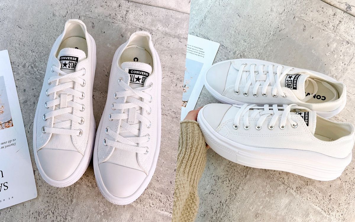 白鞋控絕不能錯過這款converse新推出的雲朵厚底鞋,低筒造型加上輕量的厚底設計,嬌小女生直接先加100分,那最特別的是它側邊用拋物線型的設計,感覺像是踩在雲朵上,也因為這個流線型設計讓平凡無奇的帆布鞋更增添活潑氣息,全白厚底好搭配之外,穿上直接擁有完美腿長!(影音企劃編輯Ann)