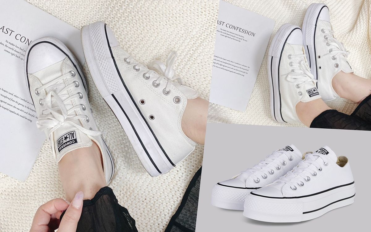 從學生時代到現在最實穿百搭的Converse帆布鞋,每次穿幾季之後,就會再入手一雙,這次直接入手白色厚底款,一樣基本又好搭配,厚實的增高鞋底,直接視覺長高超多,穿起來比一般帆布鞋還要修身,而且十分好穿、好走!(服裝企劃主編Ainsley)
