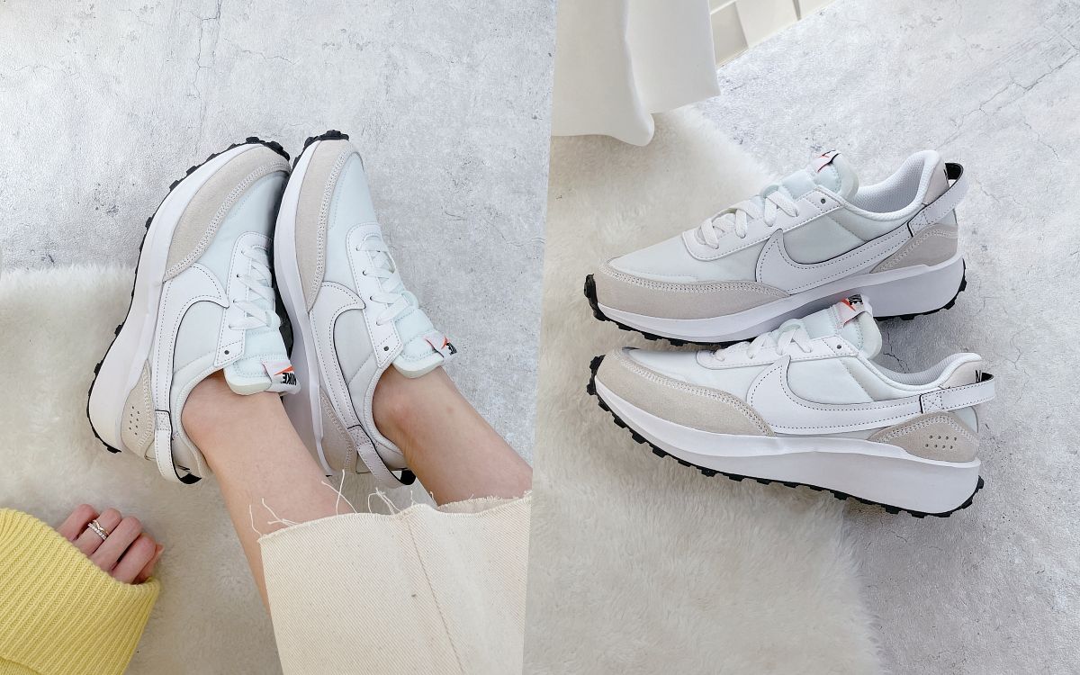Nike這雙第一眼就超喜歡!也是十分適合女孩穿著的運動鞋款,窄版楦頭超修飾腿型、流暢又優雅,米白色調與麂皮灰色相互交織,整體視覺上協調又有質感,也是日常通勤天天都能穿著的完美鞋款!(資深服裝主編Yoyo)