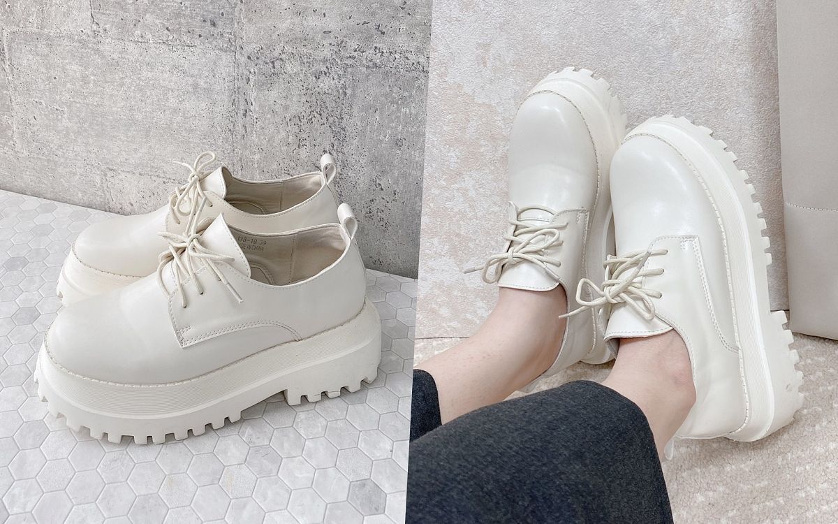 最近入手的愛鞋就是這雙,穿著腳感非常輕也很舒適,尤其它的修飾效果更是令人驚嘆,整個鞋底大約5-6cm高,增高效果無敵好,也瞬間讓雙腳線條拉長、腳踝更纖瘦!而且米白色系加上牛津鞋型,讓鋸齒底鞋款的陽剛感減少許多,反而更加適合女生穿搭~無論優雅氣質的洋裝穿搭,或日常率性、休閒搭配都不NG,是一雙超推薦的百搭實穿又顯瘦小白鞋!(服裝企劃主編Ainsley)