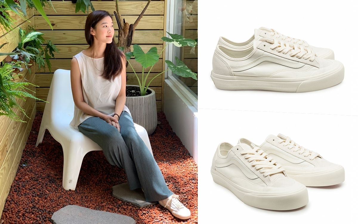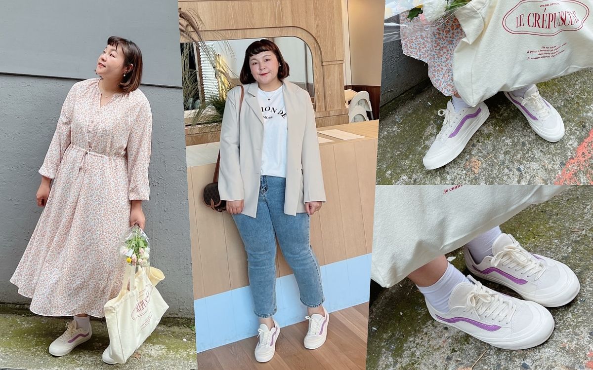 對於身型關係加上腳大又寬的我來說,在穿搭重點上[鞋子]選擇非常重要,太過輕薄感加上白色的鞋子很容易讓我的比例變下身太輕而不好看!去年看到這雙可愛的VANS發現他的底不過薄,加上偏圓頭的鞋款對於腳型問題也能有很大的修飾效果,穿上洋裝加上襪子的話相對很有份量感,整體修飾效果也很加分!想要穿上一般的牛仔褲,選擇可以露腳踝的九分褲搭配也會有種清爽的俐落感喔~(行銷企劃主任Pobbi)