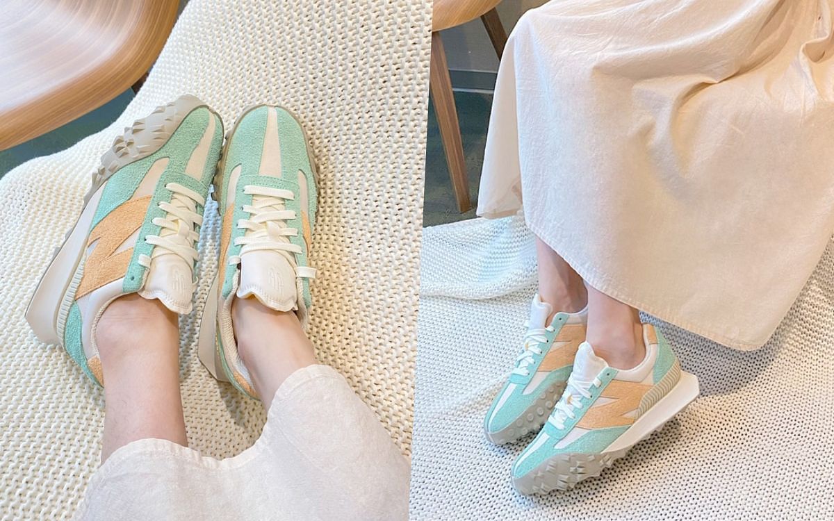 八款配色中,讓人目光為之一亮,少女心迸發的絕對是這雙!UXC72TC,以白色大底搭配以薄荷與甜柑橘色系交織的大N字樣,讓整雙鞋縈繞可愛甜美的樣貌!不論視覺或是上腳的輕盈度都是一百分~想招攬桃花,腳踩這雙,一定能給對方大方好相處的可人印象!