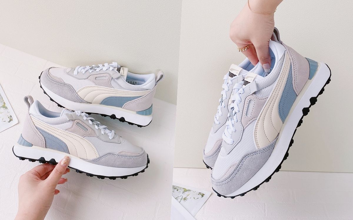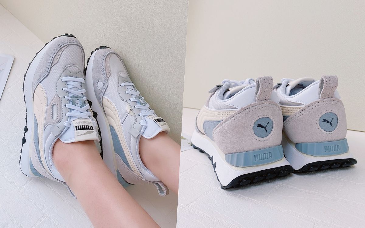 今年夏季PUMA以全新Rider FV (Future-Vintage)鞋款,準備搶攻女生們的荷包~鞋面以尼龍面料包覆,並於鞋尖及後跟拼接質感麂皮、皮革綴於鞋側,透過異材質及色彩勾畫出層次感,且輕量耐磨大底加入獨特減震設計,舒適度全面升級,而鞋後跟大膽改以稜角方邊裁型呈現,打造出超搶眼的視覺效果。