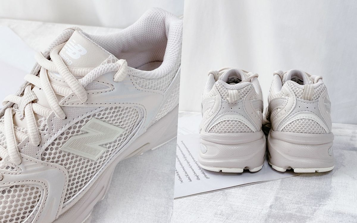 New Balance在女生時尚圈裡熱門的復古老爹鞋型530,本季新款以奶灰色的高級質感氛圍,將看似粗曠、機能的鞋型外觀柔化,整體線條輪廓設計上腳後特別修飾腳型,小腳、顯瘦效果特別好,且大底也有基本增高視覺感,整體優雅知性又休閒率性的混搭風格,令人難以抵抗,想力馬入手!