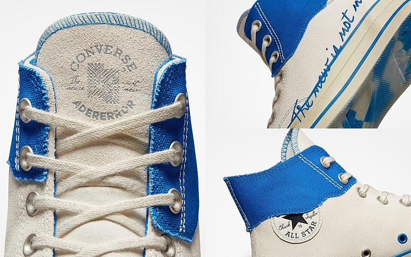 鞋款整體以懷舊復古風格為靈感,經典Chuck 70經過獨特的分層堆疊處理,呈現出全新別緻外觀。麂皮面料的運用,致敬初代Chuck鞋款標誌性設計;同時加入可拆卸覆面以及刻意做舊的鞋邊膠條,膠條上亦疊加刺繡ADER ERROR品牌標語”The new is not new”;定制後跟標點綴雙方品牌標誌性logo,麂皮鞋舌飾有不同紋樣的定制聯名品牌標識。除此之外,該鞋款還增添了許多獨特設計亮點,定制鞋帶扣和可見ADER ERROR標誌圖形的半透明大底的運用,誠意十足。