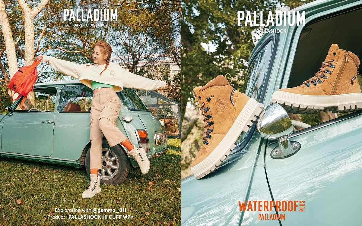 全新橘標防水PALLASHOCK HI CUFF巧克力靴從「GO OUT! 城市出走!」概念出發,希望大家可以來場說走就走的旅行;而喜歡迎接不同挑戰與驚喜的吳映潔也分享了旅行中自己最在意的兩個重點,除了有「好的旅伴」,更重要的是要有「一雙好穿的鞋」,日前在日本度過跨年的吳映潔也是穿上了PALLADIUM的防水靴,本次更直接點名橘標防水PALLASHOCK HI CUFF巧克力靴就是一年四季旅行的必備鞋款,更挑選暖甜穿搭首選的「溫柔奶茶」、還有不敗百搭的「酷黑餅乾」是自己最喜歡的兩款專屬色,分別帶出自己柔和甜美與個性俏皮的不同風格,而平時穿搭多變的她也分享了自己的靴款私藏搭配,只要穿上寬鬆帽T搭配百褶裙,加上雙倍厚度巧克力大底的隱形微增高效果,就能讓整體穿搭比例更加完美!