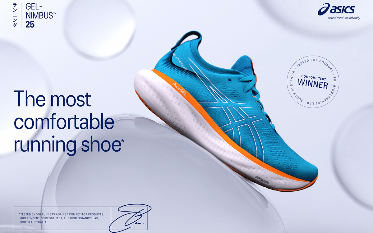 亞瑟士為了評估鞋款舒適度,委託南澳大學生物力學研究室的Chris Bishop博士展開獨立研究,邀請100 名跑者進行8週的測試,與市面上其他跑鞋比較,並根據緩震、穩定與靈活性進行評估,分析結果 GEL-NIMBUS 25 在各方面皆排名第一。