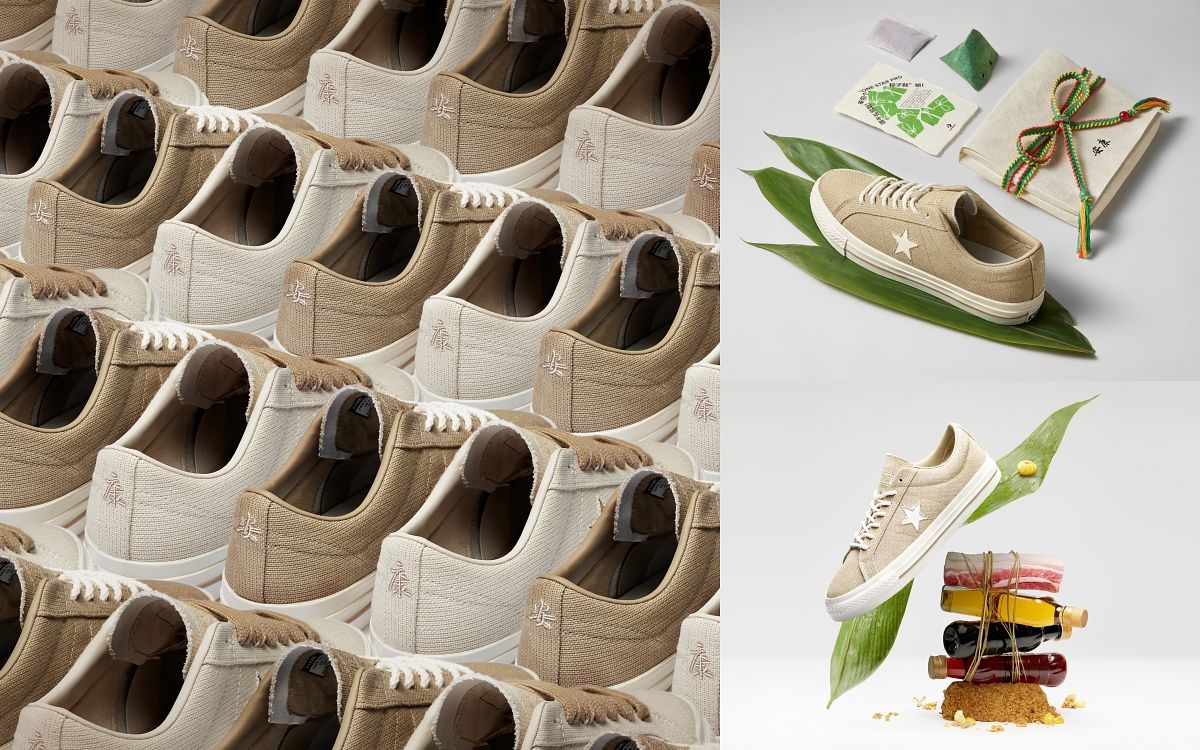 圖片來源:Converse同時鞋款設計中還蘊涵著致敬端午節的多種細節,麻布質感鞋面和麻繩風格可替換鞋帶源自包粽子時所使用到的道具,帶大眾重溫兒時包粽子時的那份樂趣;定制鞋墊上印有屈原名句「路漫漫其修遠兮,吾將上下而求索」,為每個堅持理想的追夢人注入力量;左右腳後跟分別印有的「安」、「康」二字則是Converse對大家最真摯的祝福。該系列鞋款整體設計簡潔,更通過豐富的文化細節,為你的整體造型提升質感。