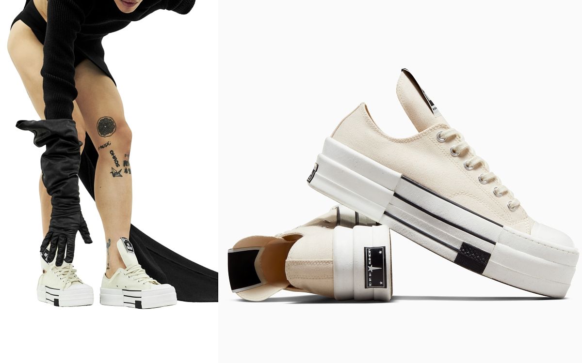 Converse再度攜手Rick Owens支線品牌DRKSHDW,以前衛設計和新銳實驗性為合作理念,推出Converse x DRKSHDW DBL DRKSTAR Chuck 70聯名設計,昇華重塑品牌經典鞋款,讓Chuck 70「踏」上雙層鞋台。