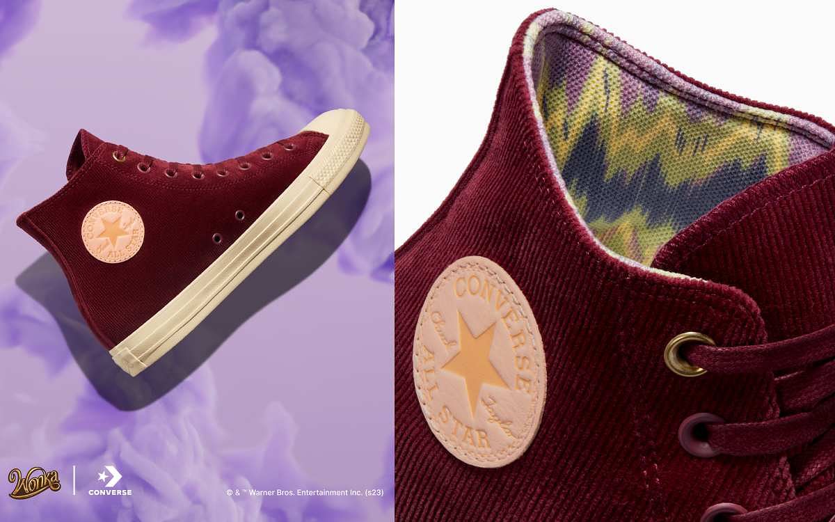 CONVERSE攜手電影《旺卡》,從主人公威利·旺卡(Willy Wonka)的冒險故事汲取靈感,向傳奇電影角色致敬的同時,並將他富有想像力精神注入經典鞋款、服飾和配飾,帶來適合多種年齡段的妙想系列。