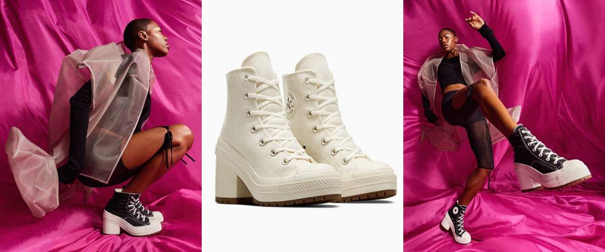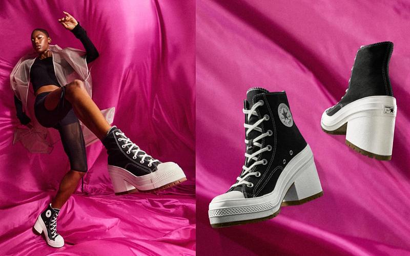 DE LUXE HEEL復古粗跟鞋則將經典Chuck Taylor設計元素與個性鮮明的復古粗高跟相融合,使經典鞋型煥發全新華麗面貌,為搭配提供全新的時尚思路。 穩固的粗跟和鞋底,搭配經典Chuck 70的鞋面,造型高調獨特,令人眼前一亮。
