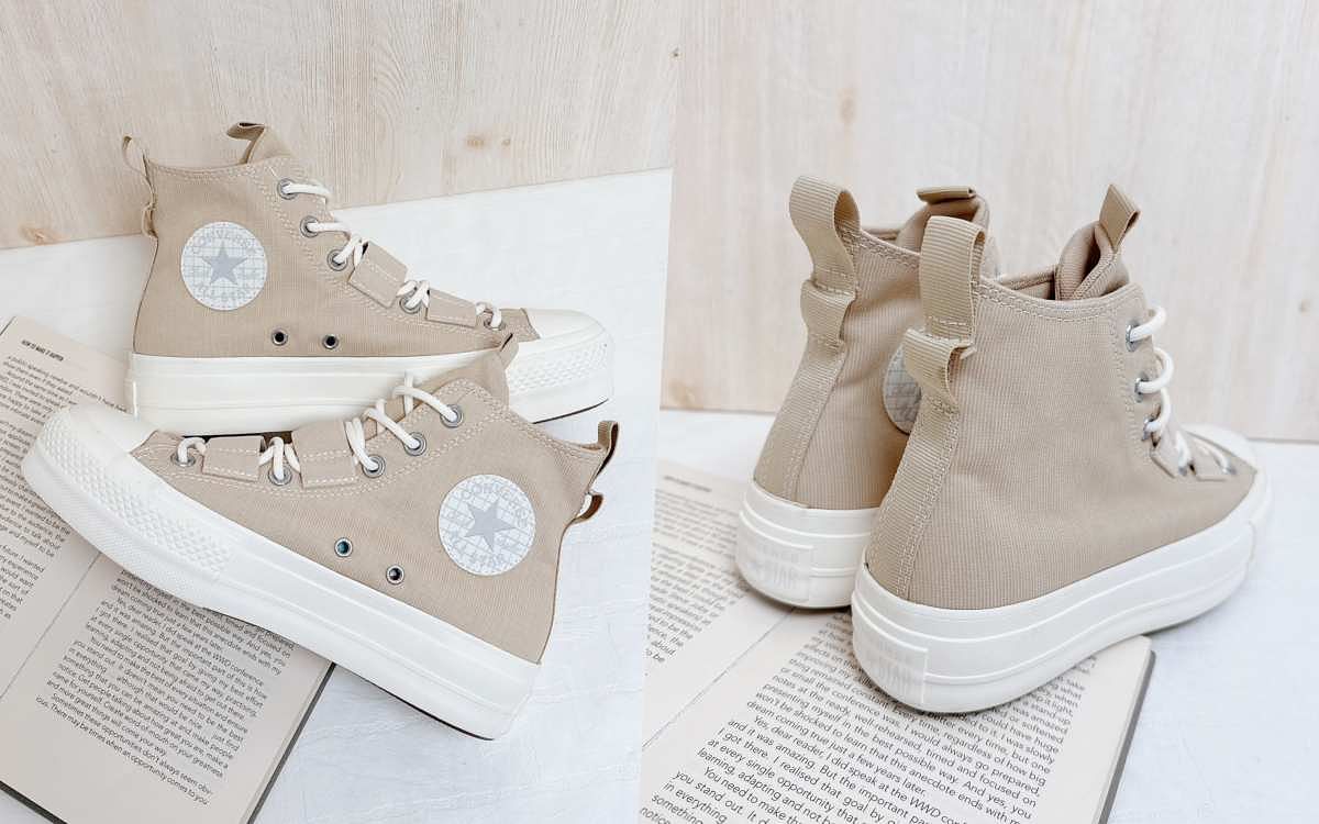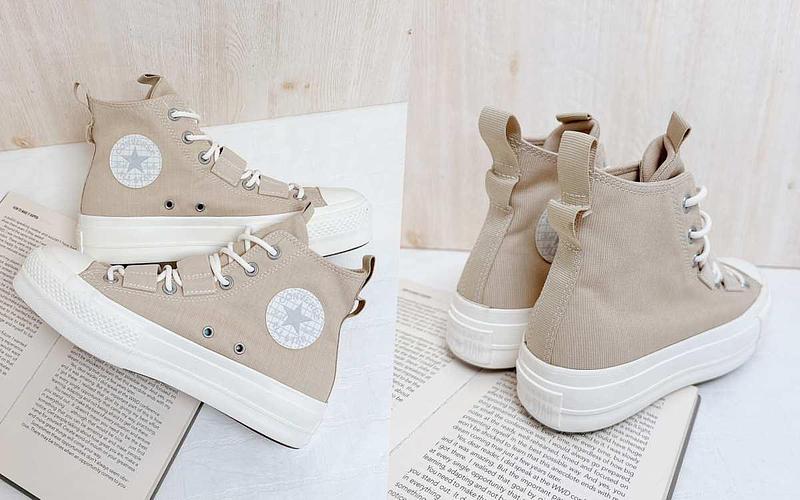 鞋櫃裡絕對要有一雙Converse厚底鞋才可以!不想太過高調或搶眼,從簡單基本的款式入門就沒問題,這款「CTAS LIFT HI NUTTY GRANOLA」以現在最受喜愛的奶茶燕麥色為基調,在鞋外觀的各處細節藏有巧思設計,且搭配厚底實現人人夢寐以求的視覺增高效果,隨意穿搭都能自由展現自我風格,絕對是實穿度滿分的高筒厚底帆布鞋!