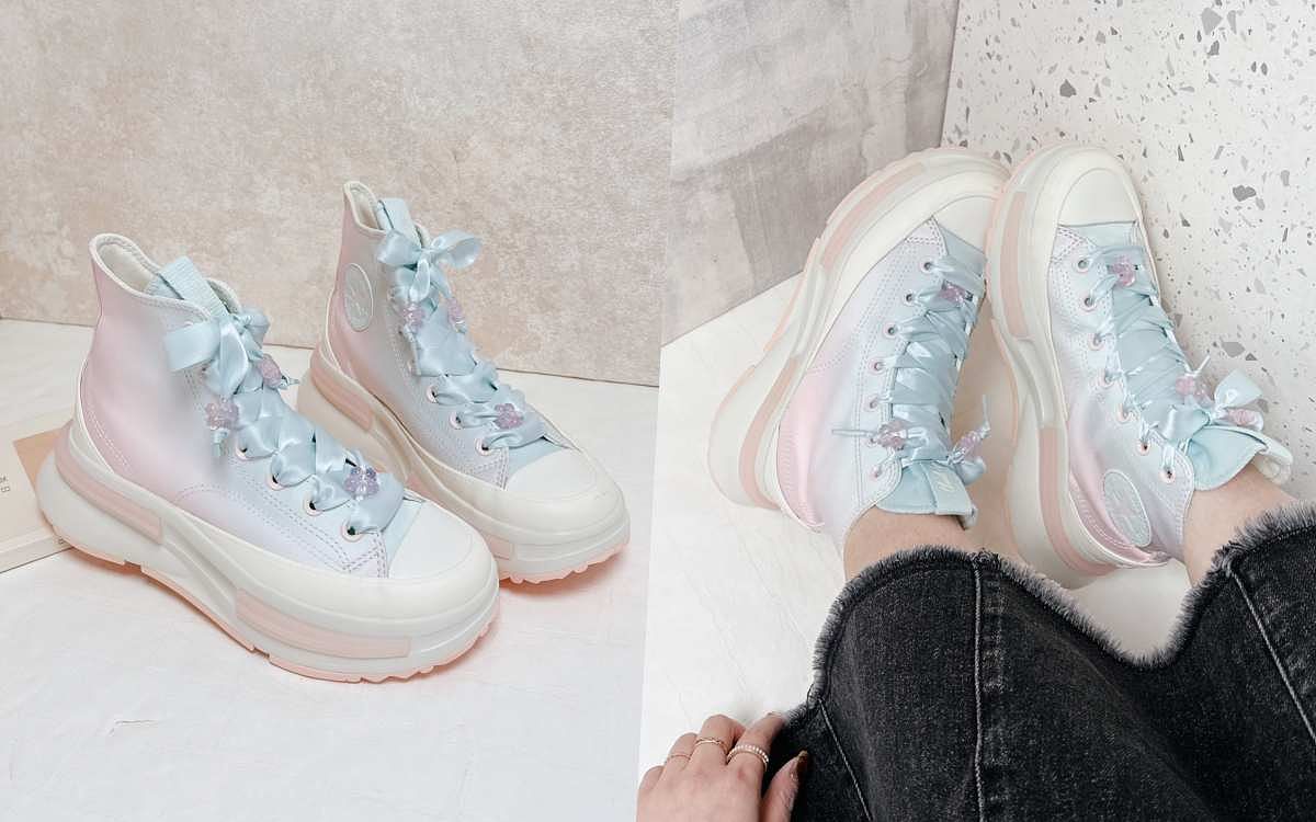 自首度登場就立刻擄獲鞋迷們狂愛的Run Star Legacy CX,外形借鑒了大眾喜愛的Run Star Hike和Run Star Motion鞋款,不同的是將設計重心放在了如雕刻般塑就的全新中底上,既大膽又流暢輪廓脫穎而出,而本季最新款式以緞面材質搭配粉紅與粉藍色漸層,營造出超粉嫩又夢幻的仙女氛圍,真的只能尖叫太可愛了吧!且鞋帶也同步更換成粉藍色緞帶,飾以透粉色花朵吊飾,整雙鞋在日常走動時,隨著光線的變化照射,呈現細膩又有質感的緞面光澤感,實在是必須收入這雙,一穿上街絕對是眾所矚目焦點!