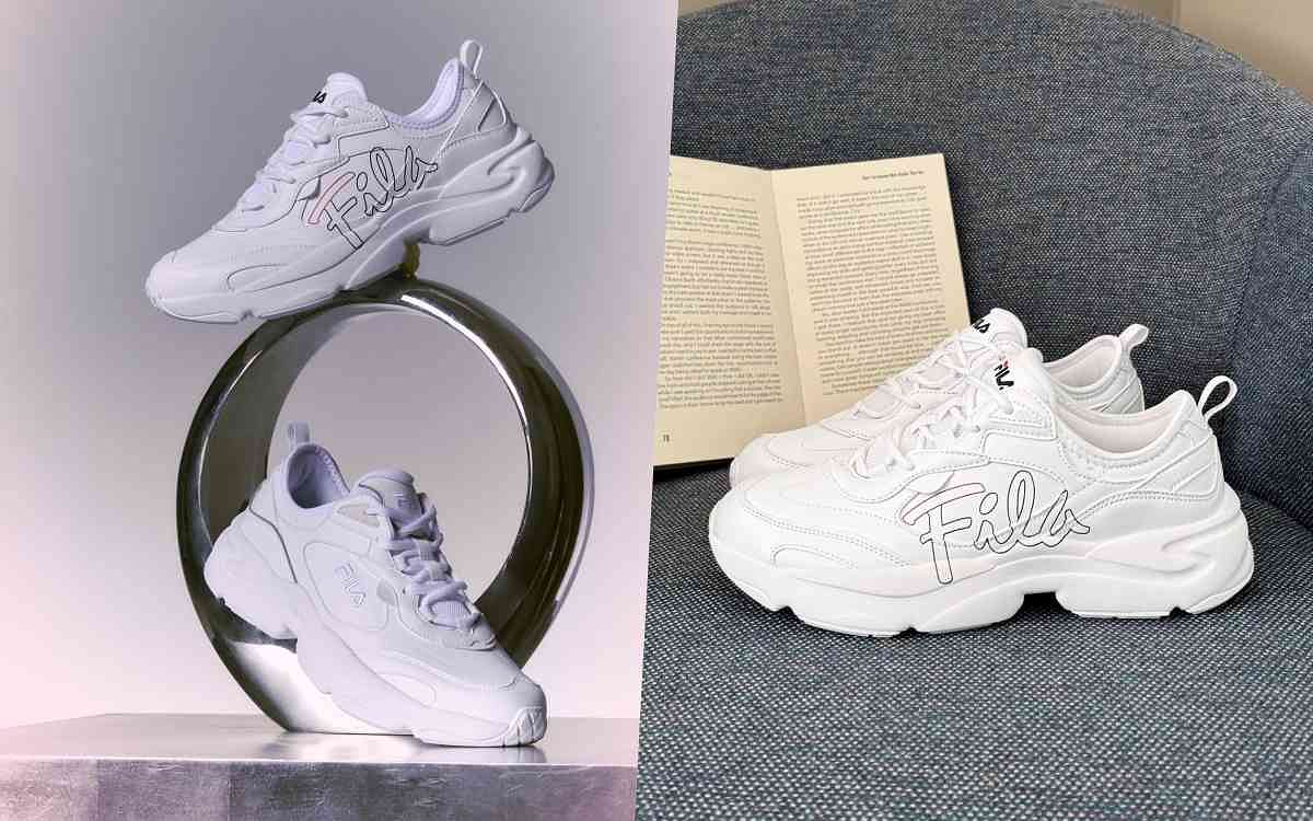 除了RAY TRAINER系列外,還有品牌極致經典大LOGO老爹鞋系列RAY TRAINER SCRIPT,純白色與奶油白兩款超人氣配色,簡約經典的老爹鞋型與俐落外觀,搭配上FILA線型字母LOGO的設計妝點,任何風格都能完美搭配,想不費腦力穿出時尚LOOK,絕對推薦擁有一雙!