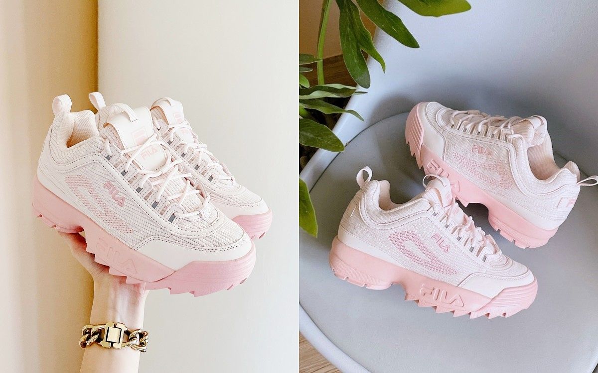 FILA DISRUPTOR KNIT v2完全可以說是老爹鞋界的始祖級鞋款!今年復刻品牌經典輪廓,推出了夢幻粉嫩、彷彿注入了少女仙氣的溫柔櫻花粉色,縈繞滿滿夏季輕盈氣息,這款鞋型除了外型絕美、更配置了輕量EVA與橡膠大底,鞋款雖然視覺上極具份量感卻一點也不沉重、鞋中底則擁有良好的吸震穩定度,除了穿著上非常好搭配、腳感也非常優秀,是一款外型與實穿度兼顧的滿分鞋履,不管是想要締造甜美造型或是個性感俐落風格都能靠這一雙輕鬆辦到!包覆性極佳的穿著體驗就算出國奔走也沒問題!