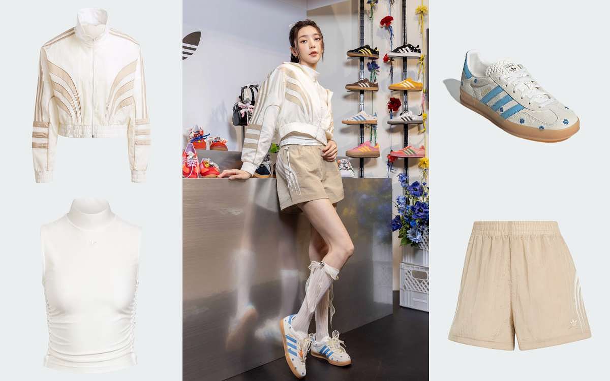 圖片來源:adidas戲劇女神郭雪芙以柔和的米色系的時髦運動風格搭配,現身「原創復古時尚展示間」,緞面白色無袖高領上衣搭配米色運動短褲、外搭同色系運動外套,將復古運動與女孩風元素完美融合。腳踩最新推出花朵GAZELLE鞋款,配上透膚膝下襪,並於襪子及鞋上飾以「原創改造包」中的緞帶、蝴蝶結、珍珠、花朵等配飾,替整體率性造型中增添夏日浪漫元素,打造少女運動風(BALLETCORE)。郭雪芙表示:「復古時尚對我來說,是一種情感的延續與時尚的融合。無論是演戲還是日常穿搭,都會有機會從不同時代的經典元素中汲取靈感,並融合當下的潮流趨勢,創造出屬於自己的獨特風格。今天穿搭中,我自己非常喜歡腳上的改造GAZELLE鞋款,鞋子上的刺繡小花增添了夏日活力的氣息,加入這次限量的花朵改造包內的配飾,又可愛又夢幻非常適合夏日約會。」郭雪芙個性中帶有浪漫的RETRO STYLE,展現其在時尚領域獨特的品味與駕馭力。