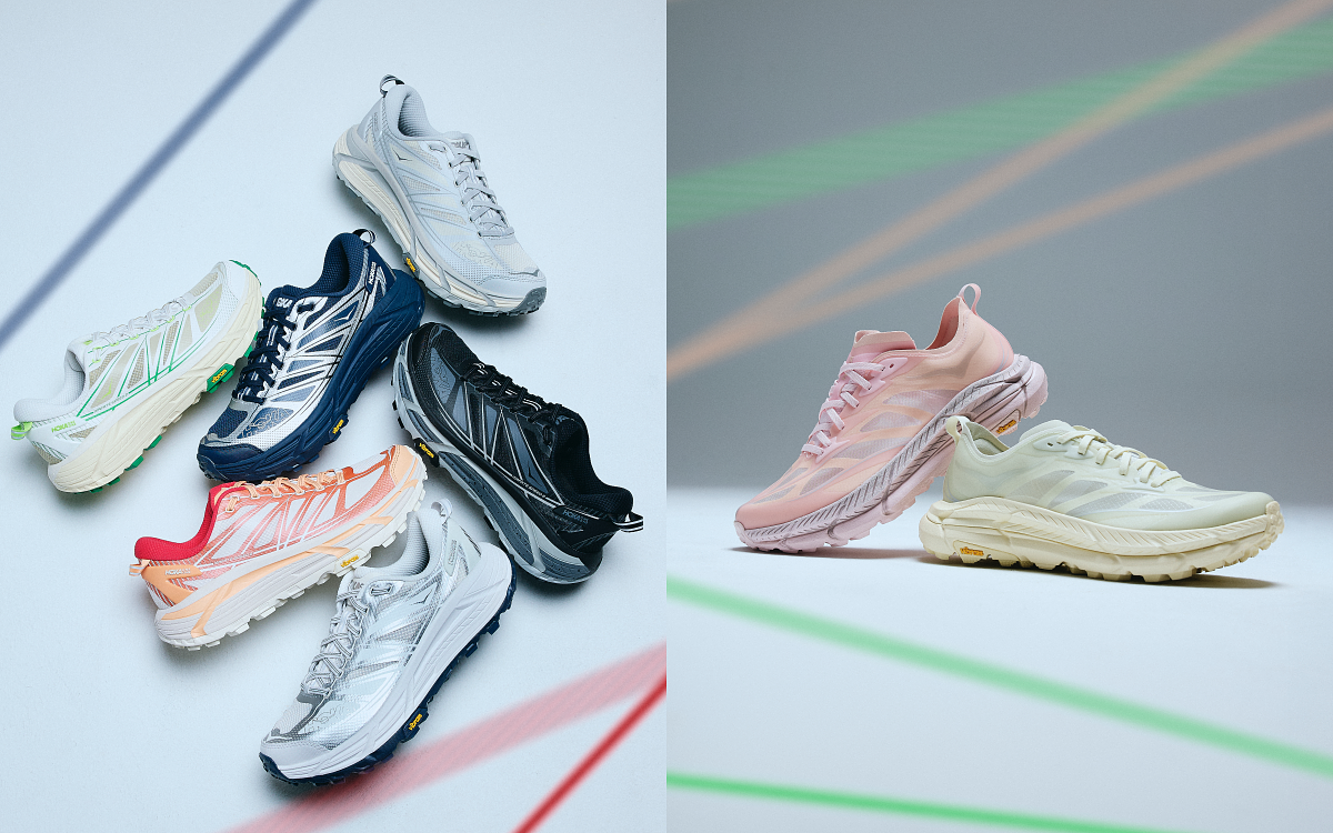 誕生於峽谷的Mafate,凝聚 HOKA 對複雜地形與長距離挑戰的執著。此次展出的Mafate Lifestyle系列以「越野靈魂」 × 「都會風格」為核心,展現品牌如何將性能基因延伸為生活態度。Mafate Speed 2 以復古輪廓結合現代結構,搭載 Active Foot Frame 與 Meta-Rocker 中底結構,並以 Vibram® Megagrip 大底強化抓地力與穩定度,實現山徑與街頭的靈活轉換。Mafate Speed 4 Lite 則在 PROFLY™ 中底基礎上,採用極輕量半透明鞋面與反光細節,打破機能鞋的厚重印象,開創新風潮結合前衛氣息,讓「飛行」的輕盈感具象化於日常步伐之中。