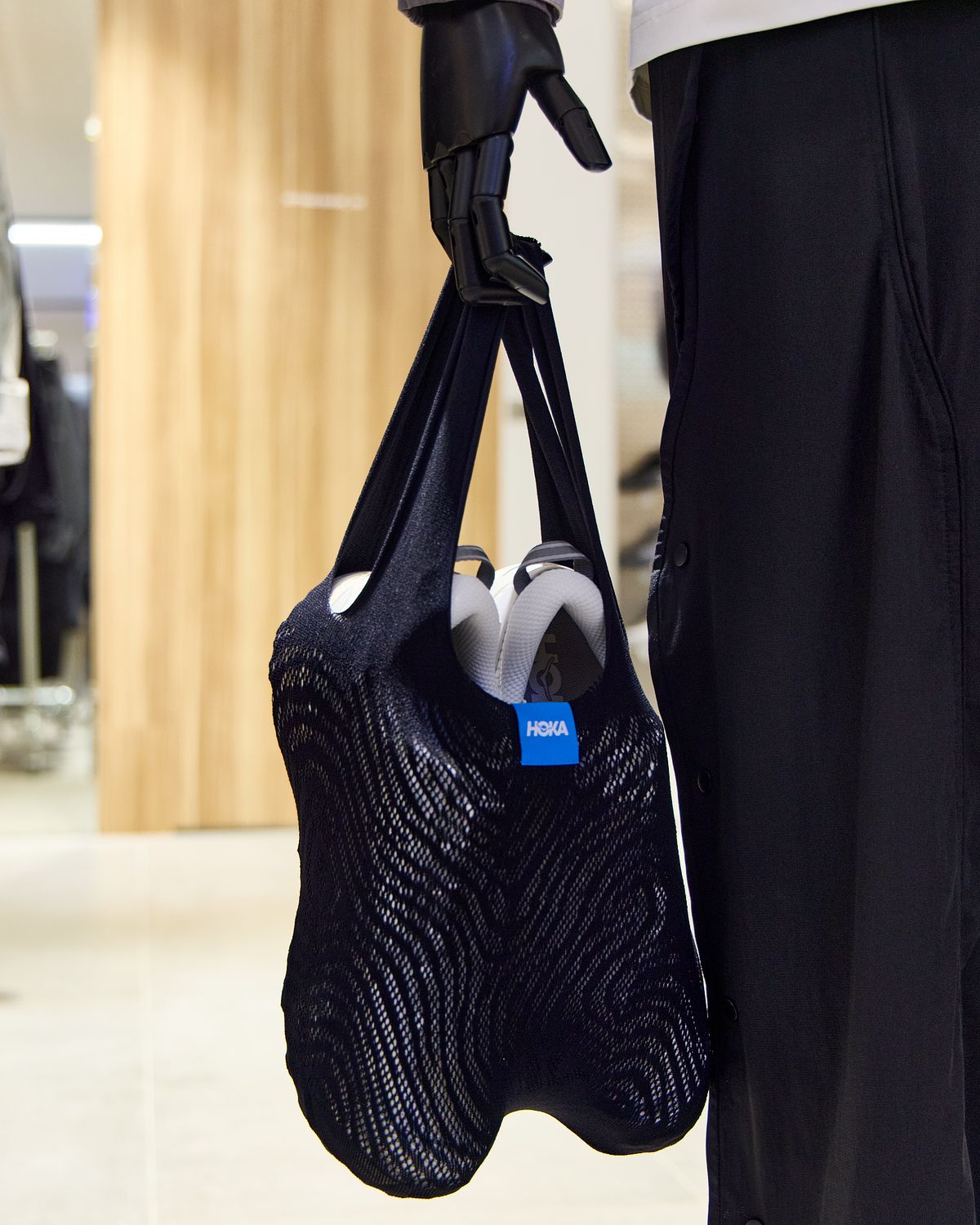 展覽期間(11/14–11/30),凡於 WHITEROCK 購買任一 oqLiq 商品加上HOKA Mafate系列鞋款,即可獲得「HOKA x oqLiq 等高線彈性針織提袋」。提袋設計取材自 Mafate 系列的等高線圖樣,以高延展材質製成,象徵靈動與自由的日常精神。