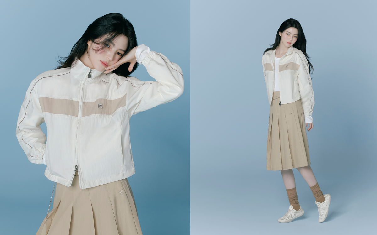 延續優雅主軸,韓韶禧以全新春日造型細膩詮釋 FILA 現代美學,奶茶色輕薄 Track Jacket 搭配隨步伐輕盈擺動的百褶裙,上腳 GLIO 芭蕾薄底鞋,於行走之間勾勒出流動且從容的節奏,延續 FILA 一貫的義式優雅運動美學,讓運動與時尚在日常之中優雅共存,展現屬於當代女性的自信風格。本季韓韶禧演繹話題單品於台灣 FILA 專櫃門市及 FILA 1911 時尚概念店限量上市。
