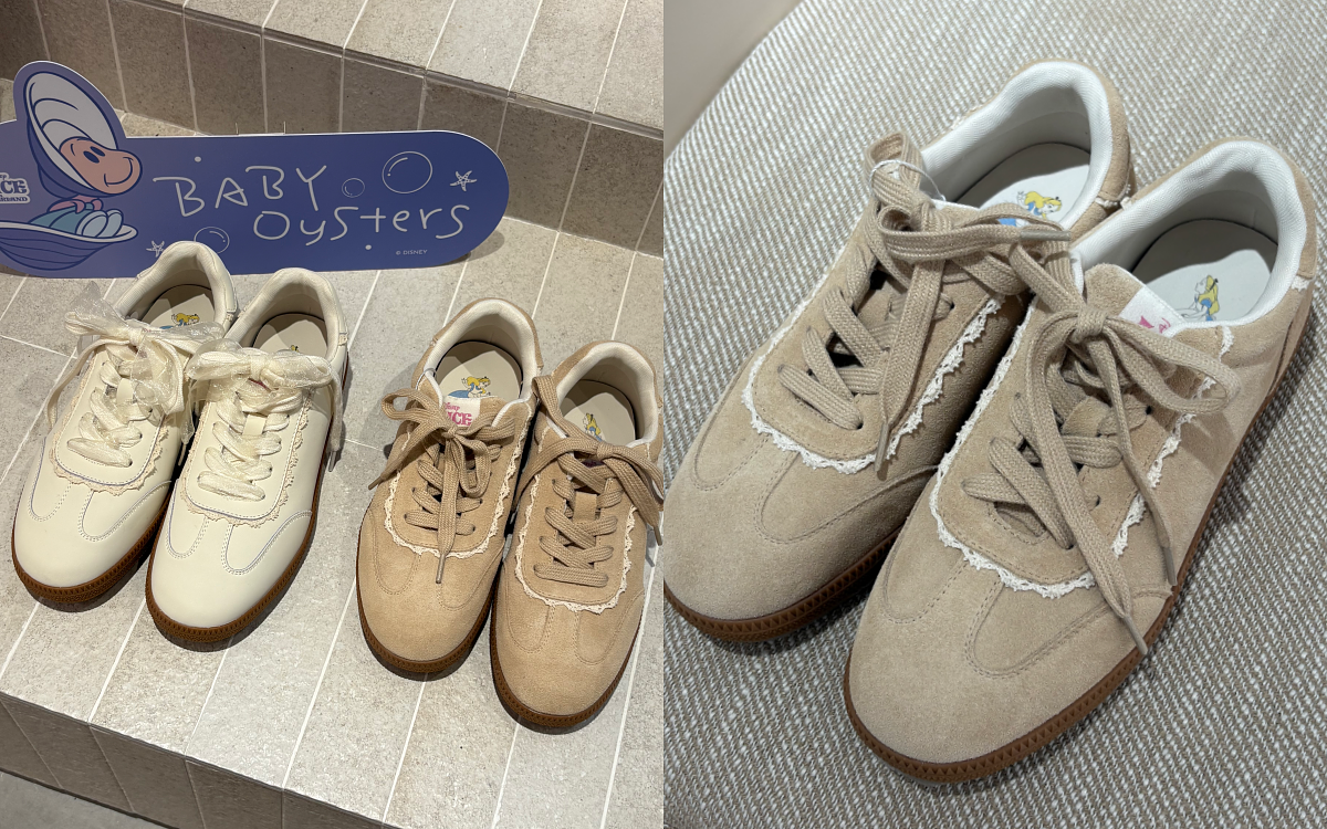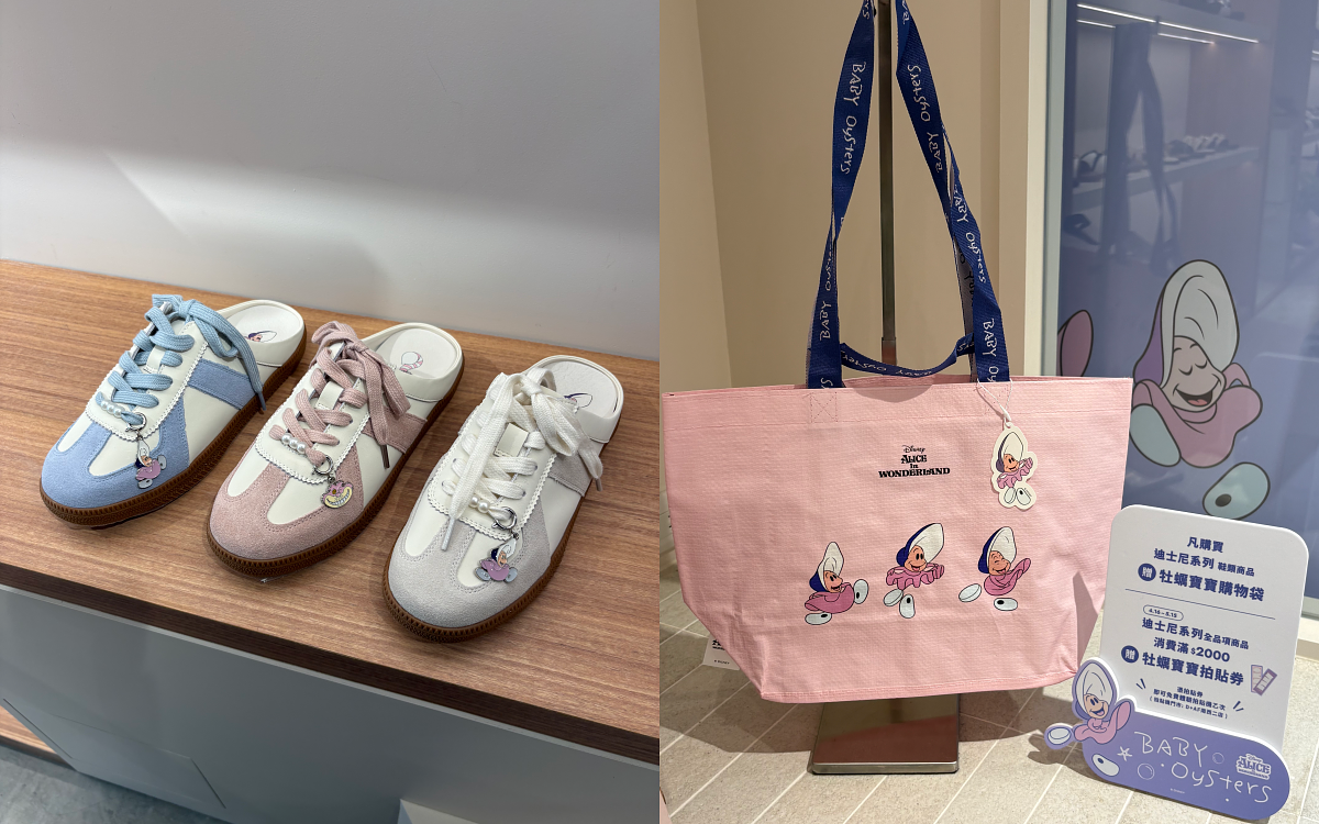 以出自《愛麗絲夢遊仙境》的隱藏版角色「牡蠣寶寶」為靈感,其圓潤外型與天真神情,受眾人喜愛並在社群上快速竄紅。延續這份獨特魅力,D+AF本次同步推出三款主題鞋履與三款造型吊飾,將角色細節全面融入日常穿搭之中。主打百搭實穿的「牡蠣寶寶款雙色鞋帶小白鞋」,在經典小白鞋輪廓中注入牡蠣寶寶的療癒元素,並結合三大機能設計:品牌輕量鞋底、高彈力機能的「頭等艙雲感緩震鞋墊」與防潑水機能皮革,兼顧舒適與實用。每雙鞋皆附兩款不同風格鞋帶,讓妳依心情自由切換,穿出屬於自己的日常風格。