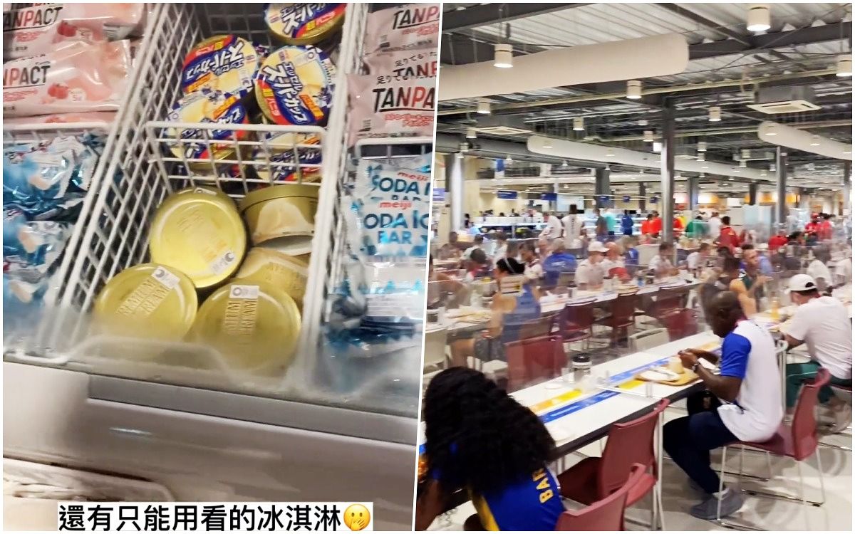 大家應該很關心我們的選手有沒有吃飽吃好呢~文姿云幫大家導覽了一下餐廳,因為疫情關係都有透明隔板增加安全性,以及有各種食物可以選擇,讓選手們能吃得更均衡,但讓所有選手最心碎的是,看著滿滿的冰淇淋卻因為即將參賽所以一個都不能吃!文姿云也哀怨的註明:「這是只能看不能吃的冰淇淋」