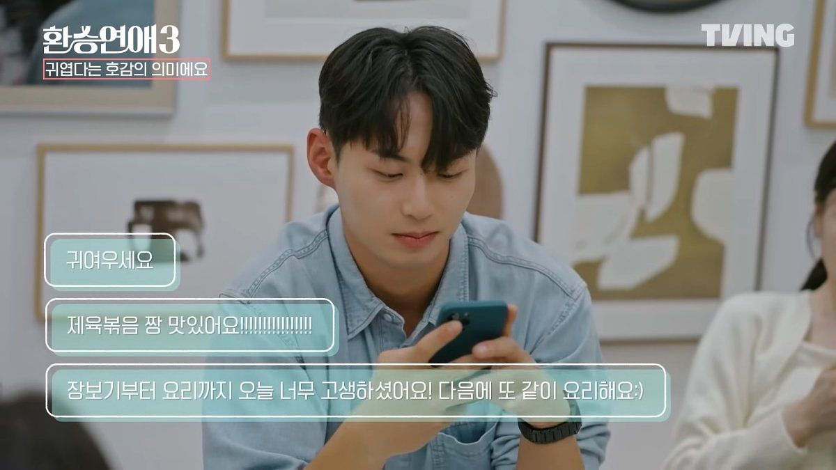 圖片來源:YT@TVING_official本季第一個入住的光泰,個性隨和大方,總是像房東告訴大家哪裡有什麼東西、引領大家去參觀。入住當天負責採買、煮菜時,採買前細新詢問大家吃否吃辣等等,正式下廚後也能發現光泰的刀藝精湛,桌上的辣炒豬肉更是被大家吃個精光~飯後小酌時間,主動擔任起調酒師的位置,各種細節都展現光泰親和的魅力!採訪中東振與輝鉉都前後表示覺得自己的前任X會對光泰有意思!當晚光泰也收到3封簡訊,人氣之高可想而知~