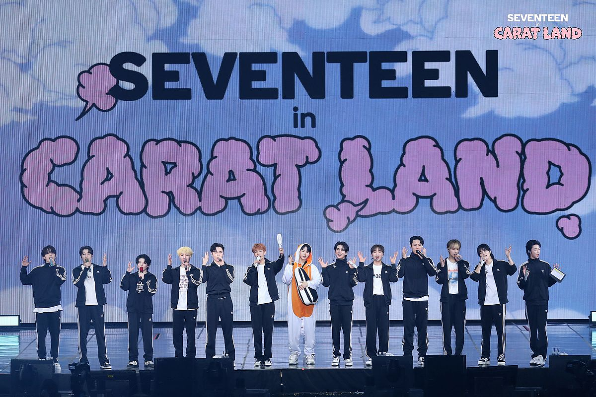 身為「刀群舞專家」的SEVENTEEN在綜藝節目上也曾全員一列跳舞,絲毫看不出破綻外,舞台實力堅強的他們,台上現場演唱經常也會出現顯示LIVE演唱的喊麥,讓人直呼「喊麥男團」。出道前也曾受公司綜藝相關課程的指導,不管是在近期的《NANA TOUR》或是自製綜藝《GOING SEVENTEEN》都能感受到他們的綜藝效果極佳,畢竟不是每個剛被叫醒的人都能又唱又跳的吧~(就是在說李DK無誤!)最後關鍵字「Carat克拉」,正是SEVENTEEN歌迷的名字,總是對於歌迷喜愛掛在嘴上的他們,這個關鍵字絕對不能少!