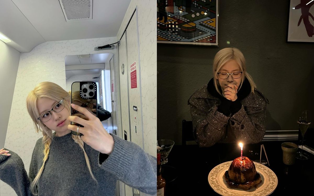 在近日Rosé的Instagram貼文中,常常可以看到頭頂著她標誌性淺金髮色、以眼鏡作為亮眼單品的私服穿搭自拍。而於最新的日常造型中,Rosé配戴上在幾年前十分流行的黑粗框矩形眼鏡,搭配剪裁寬鬆舒適的羊絨大衣與針織毛衣,演繹出高智感氛圍的都會女性著裝,且與時下流行的大鏡框相比,偏窄的鏡框剛好可以完整框住眼睛,讓眼睛看起來更加俐落,饒富幹練時髦之感。