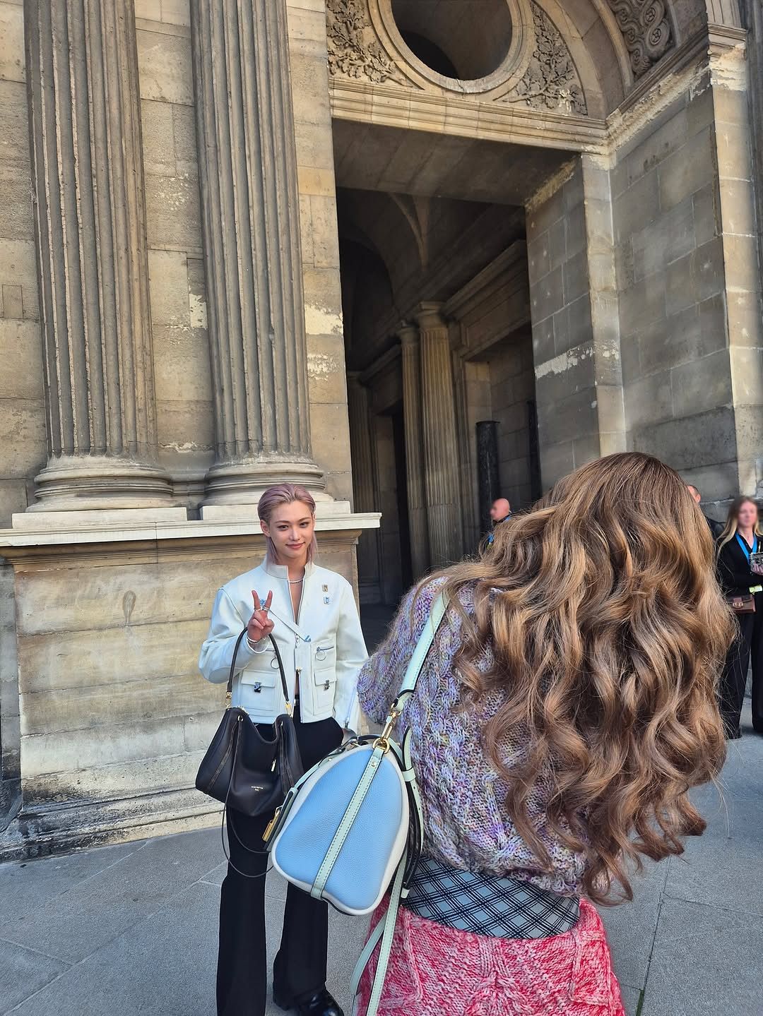 在 Felix 親自公開的照片中可以看到,LISA 頂著如芭比娃娃般棕色捲髮的漂亮背影,正認真的捕捉下 Felix 的秀場花絮照,而下一張 Felix 手拿 LV 包包露出調皮笑容的照片,推測就是由 LISA 拍攝。照片曝光後,粉絲們都直呼兩人互動太可愛,並表示「好喜歡這對時尚姊弟檔!」而 LISA 也同樣在社群媒體上傳的一系列 LV 秀場照中,公開與 Felix 的合照和自拍,兩位巨星的夢幻同框實在太好看啦!