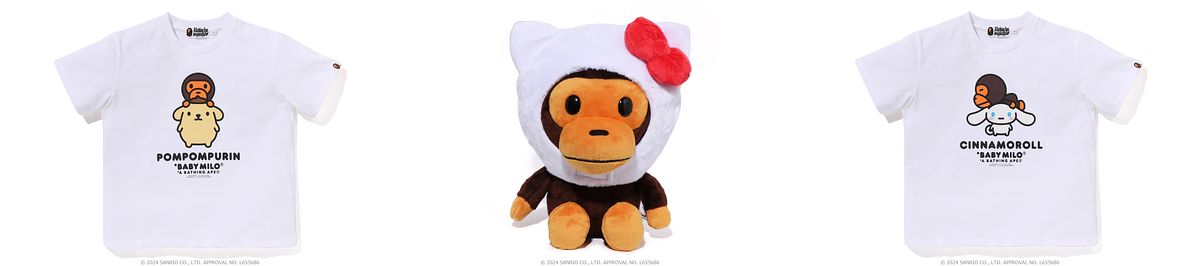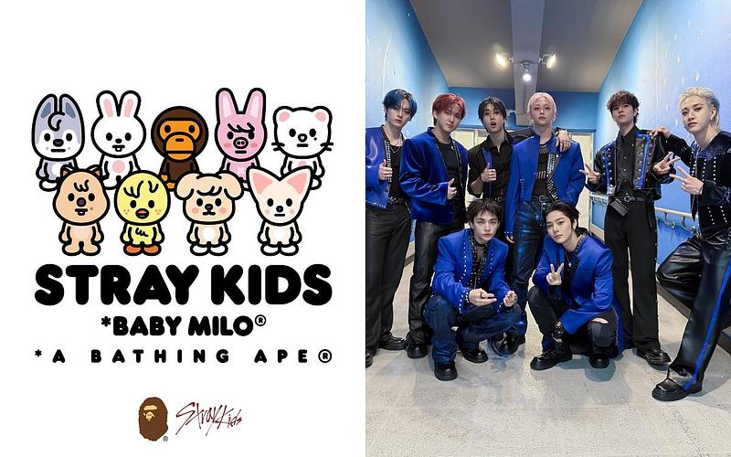 潮流品牌 BAPE 自日本原宿發跡,以獨特的迷彩圖案、猿人頭 Logo、鯊魚帽 T 等經典設計聞名,融合街頭文化、嘻哈音樂與日系時尚美學,而品牌副線角色小猴子 BABY MILO 推出後,因可愛又親民的樣貌大受歡迎,過去 BABY MILO 曾與三麗鷗家族、韓國星巴克⋯⋯等聯名,這次則首次與男團 Stray Kids 合作。