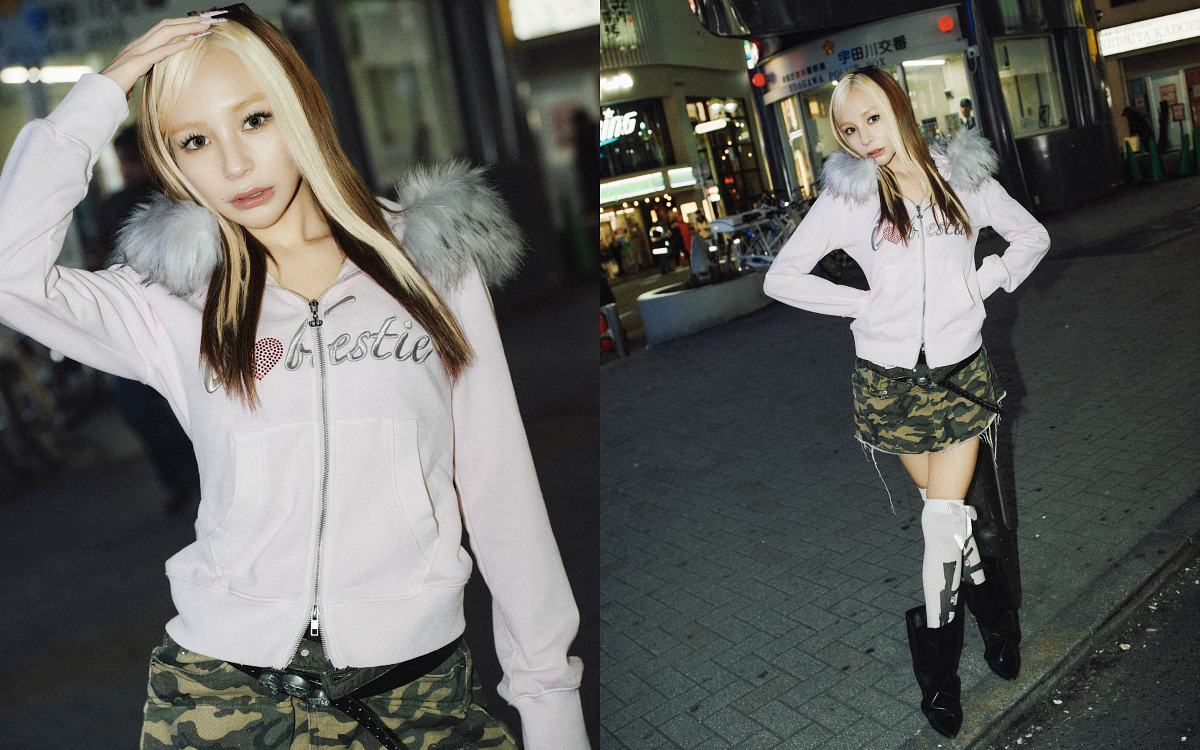 而平時形象甜美的北鼻,這次的造型同樣亮點十足。他與小綺穿上同款不同色的粉色連帽外套,下身則搭配了個性的迷彩工裝短裙。最吸睛的莫過於北鼻露出了他在節目中就相當引以為傲的纖細長腿,在工裝風格的襯托下,顯得格外可愛且亮眼。這種甜美與硬核街頭風的撞擊,正符合日本 Z 世代最推崇的穿衣哲學,也讓北鼻展現出不同於以往的時尚表現力。