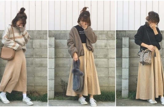 版型基本的長圓裙也是重複穿搭絕不能缺少的百搭狂品!一樣選擇像是卡其、黑色、灰色這類的基本款大地色調,就能無極限搭配出多樣面貌,有時候覺得穿搭上遇到瓶頸,其實只要換雙鞋就沒問題了!女孩們可以嘗試看看唷!