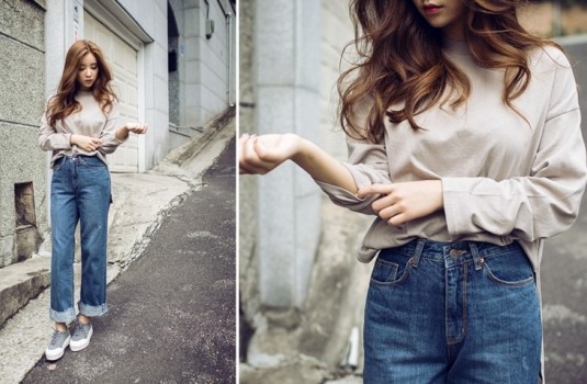 個子嬌小、肉肉女孩想穿出瘦感,就必須注意比例的提振!想要讓比例高挑修長,選擇高腰剪裁絕對能瞬間達成!將上衣紮入腰間,然後將下擺拉一點出來讓衣著更為隨意,除了能夠強調腰線、視覺上更纖細之外,也能製造出長腿的高挑效果,在冬季想要入手丹寧褲,絕對要注意的關鍵就是腰線部分的剪裁唷!